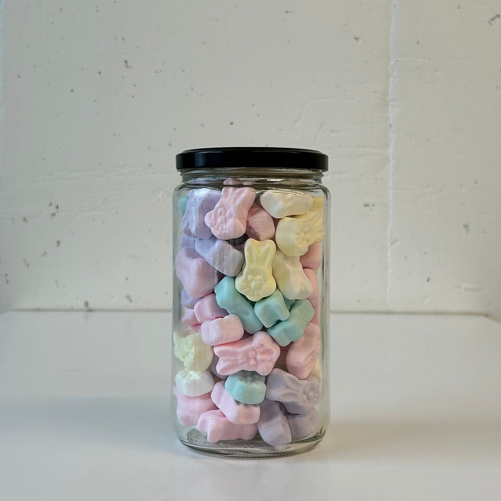 Ingredients: Sugar/glucose-fructose, corn starch, glycerin, gelatin, natural and artificial flavour, erythrosine, brilliant blue FCF, tartrazine